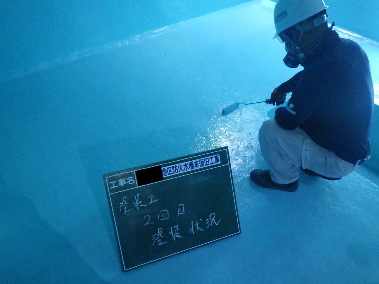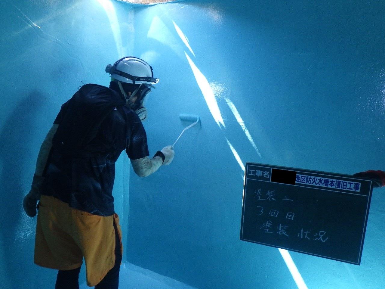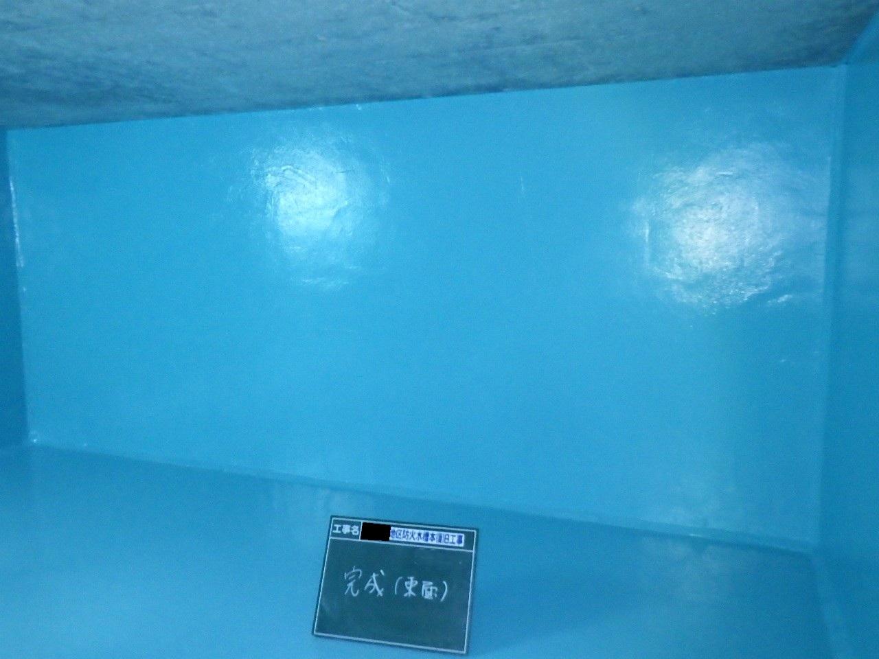 内容:40㎥のコンクリート製防火水槽のクラック補修及び特殊塗料を塗布することで、老朽化した防火水槽の延命処置を行った。