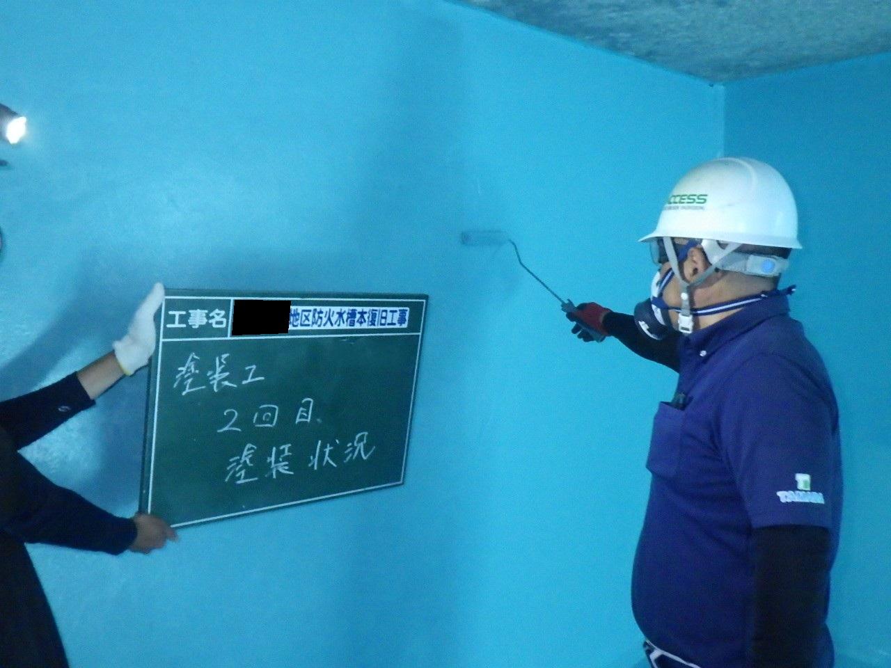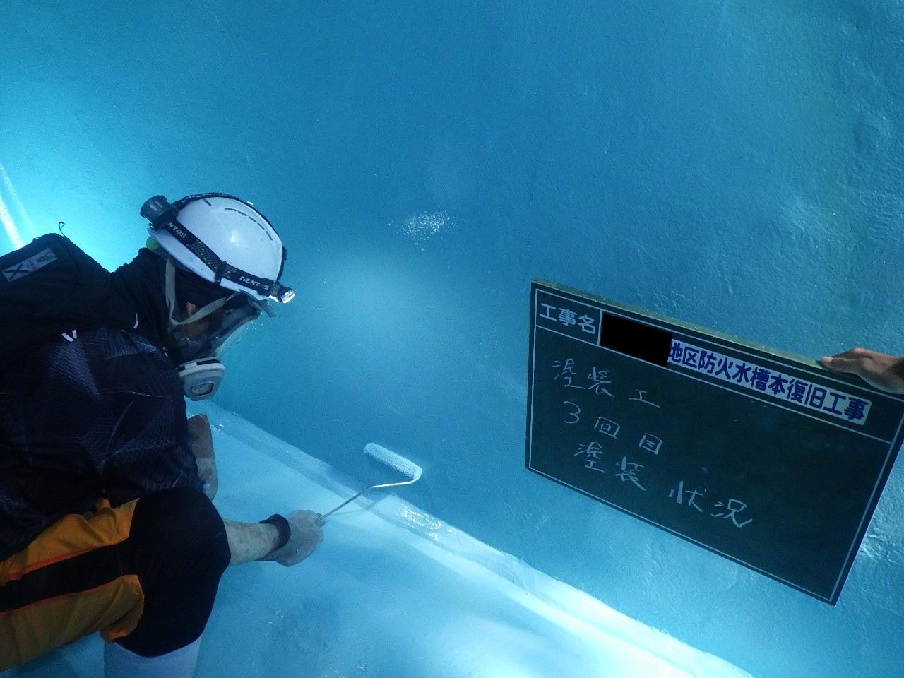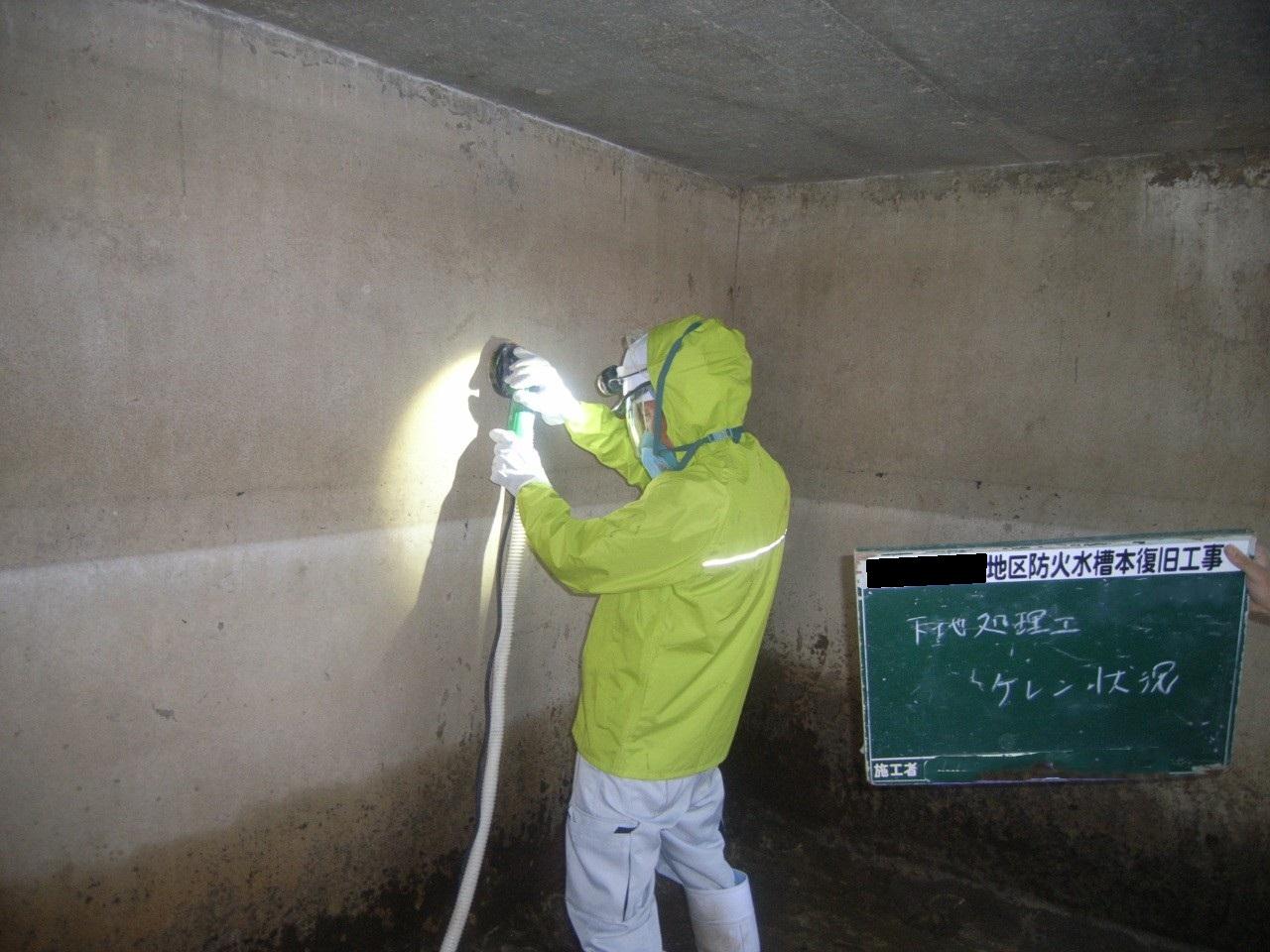 内容:40㎥のコンクリート製防火水槽のクラック補修及び特殊塗料を塗布することで、老朽化した防火水槽の延命処置を行った。